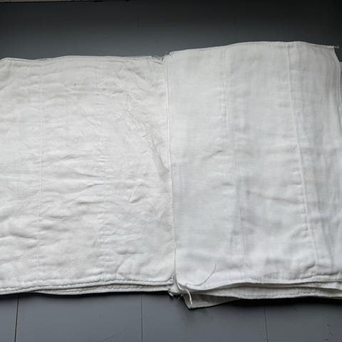 Bleiene er godt brukt, og selges derfor rimelig. Passer perfekt for deg som vil teste tøybleier eller trenger et ekstra sett til en lav pris.