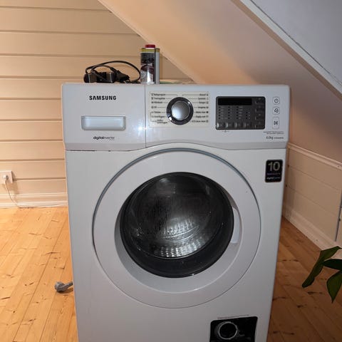 Pent brukt vaskemaskin av eldre modell gis bort mot henting i Bergen sentrum.