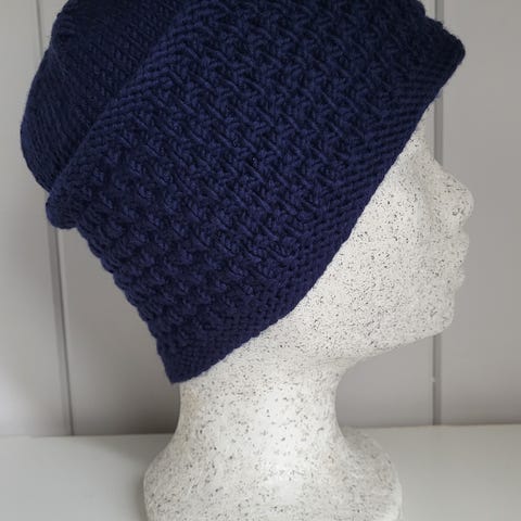 Håndstrikket isblå lue i ren merinoull - Str. M