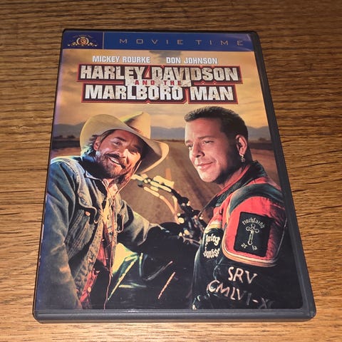 DVD med filmen Harley Davidson and the Marlboro Man. Inneholder rollebesetning med Mickey Rourke og Don Johnson.