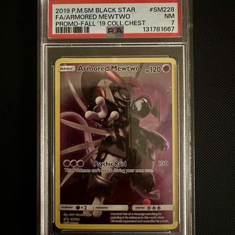 Selger en Armored Mewtwo Promo i PSA 9! Ikke mange av dette kortet rundt, eneste arten av Armored Mewtwo i tillegg!