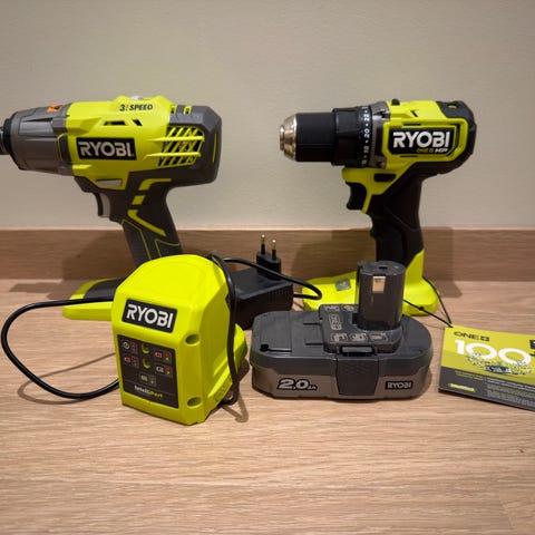 Minimalt brukt børsteløs drill med 4ah batteri litt mer brukt og hurtiglader.