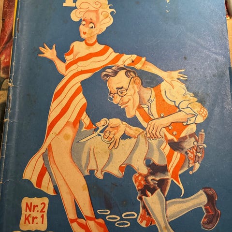 Humoristen magasin i flere utgaver med illustrerte omslag. Inneholder humoristisk innhold og tegninger.
