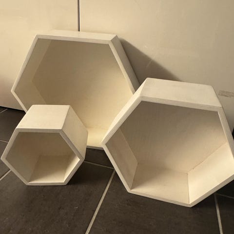Fire kjekke vegghyller selges samlet.