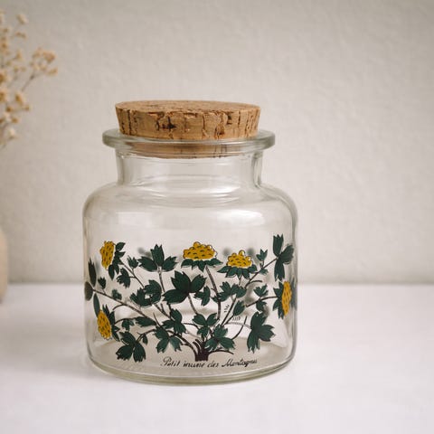Dekorativ indisk keramikkrukke med lokk, nydelig dekor av blomster og bladverk i blå og grønne toner. Perfekt som kjøkkenoppbevaring eller dekor på kjøkkenbenken
