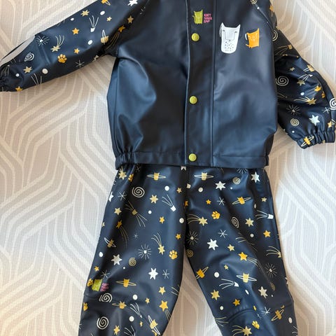 Selger et pent brukt regntøysett fra Kattnakken i strl 86. Kjempegod kvalitet, som fint holder videre bruk!