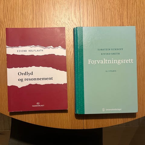 Forvaltningsrett av Eckhoff/Smith, Forholdsmessighetsvurderinger av Søvig, Ordlyd og resonnement av Kolflaath og forvaltningsrett før eksamen.