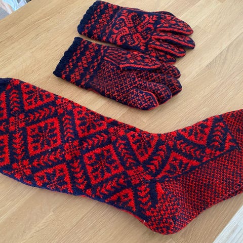 Strømpene er fra gamle dager, noe som gir de affeksjonsverdi. Alle strømpene er uten hull. Passer godt til nikkers, på ski eller hvis du skal være tilskuer på ski-VM eller Holmenkollen.