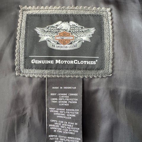 Tøff og skjelden , Harley-Davidson L skjorte uten ermer i grå bomull for menn. Skjorten har knappelukking foran og flere trykte Harley-Davidson logoer på forsiden og baksiden.