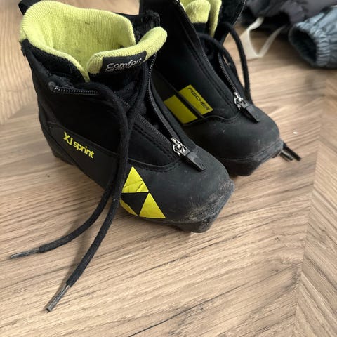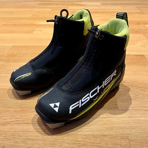 Fischer XJ Sprint langrennssko i svart og gul farge. Skoene har glidelås og snøring for tilpasning. Str. 38