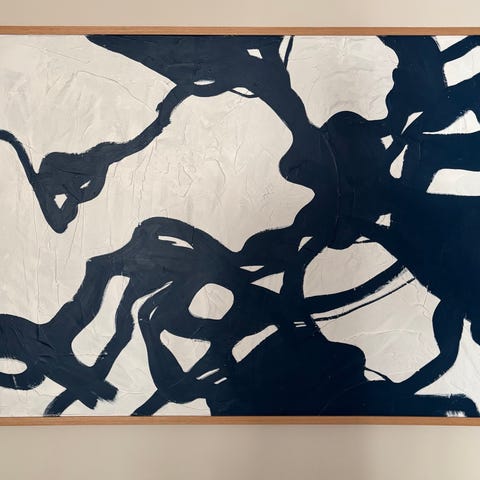 Farget abstrakt kunsttrykk med ulike geometriske former og figurer i levende farger. Passer til dekorasjon i hjem eller kontor.