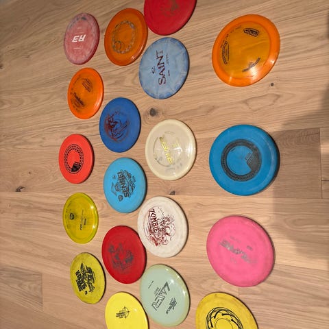 Selger diverse frisbeer da jeg har funnet ut at jeg bare bruker fem av de jeg har, selger alle for 80kr, bortsett fra opto ice splash´n som er en spesial edition frisbee som jeg da selger for 100.