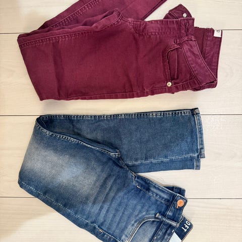 2 pent brukte joggebukser fra Lindex i str 140 selges samlet 50 kroner. Har justering med strikk/knapp i livet