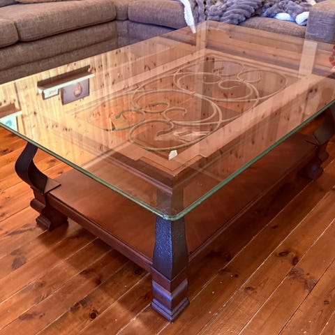 Bordet er i svært pen stand, uten skader i glass eller treverk.