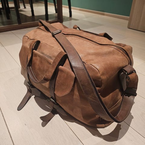 Vesken har en veldig god skinnkvalitet med mange ekstra rom. Mørkt bomullsfor innvendig.