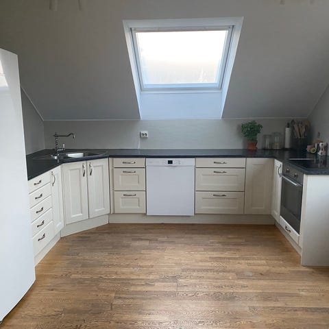 Du kan få med kjøleskapet og komfyren på bildet (begge kjøpt i desember 2025) - samt oppvaskmaskin (som trolig er ti pr gammel).