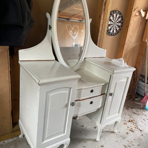 Søt kommode med mange små skuffer. Jeg trenger plassen til noe annet. Kjøpt brukt, men ser ikke ut som skuffene er brukt stort, har ikke rukket å ta den i bruk selv, en vannflekk på ett ben. Har ikke forsøkt vaske bort. Går evt an å male bena. Hentes på Kvål.