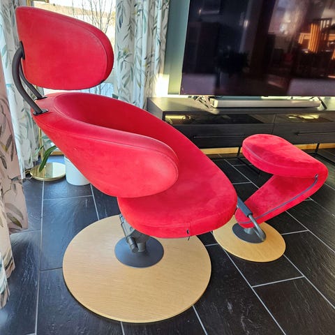 Pent brukt Variér Peel med krakk. Meget slitesterk ullstoff. Kjent designstol som er nydelig å sitte i.