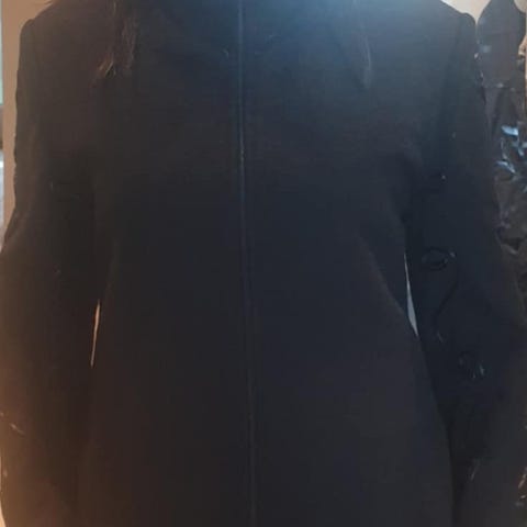 Selger en nydelig, lang kåpe fra det peruanske merket Incalpaca TPX, kjent for høykvalitets alpakkaull.