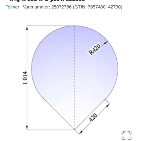 Den er 6 mm tykk, ca 108 cm lang og 89,5 cm bred.