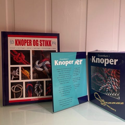 Trinnvis instruksjoner for over 100 knoper, stikk, spleiser, taklinger og flettinger. Teknologisk forlag, 1998. 50 kr pluss frakt