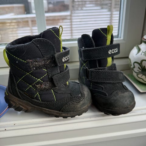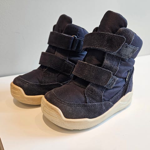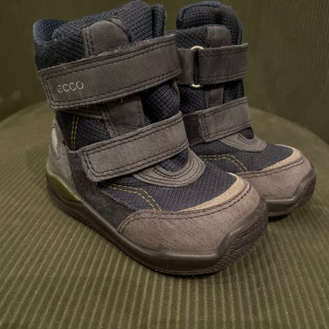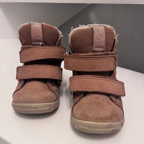 ECCO barnesko i størrelse 21, unisex modell. Skoene er brune med borrelåslukking og foret med mykt materiale for varme og komfort. Egnet for barn og gir god støtte og beskyttelse til føttene.