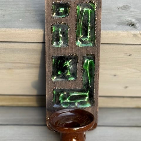 Lyslykt i brunglasert keramikk, tydelig signert KF Norge. Laget av keramiker Knut Follestad (1926-1995). Høyde 18 cm, diameter ca 10 cm. Godt laget, formet som en lykt, plass for telys inni. Feilfri.