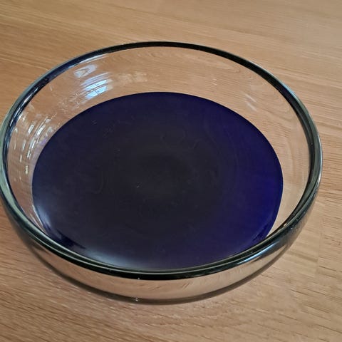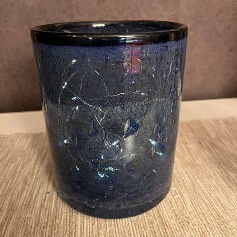 Høyden er rundt 19,6 cm, hvert glass er unikt da de er håndblåst og håndslipt.