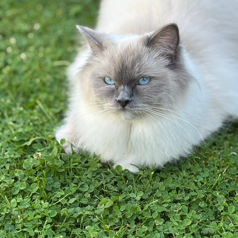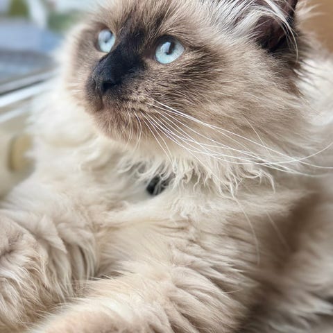 Hun er en forsiktig katt som trives i et rolig hjem som ikke er for stort. Hun er snill men ikke den du kan forvente er mest i fanget. Når hun blir trygg i huset finner hun gjerne sofakroken sammen med deg. Hun er også raskt på pletten når det er servering av mat!
