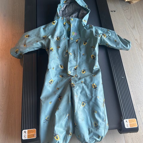 Kattnakken vattert regndress i størrelse 86, designet for gutter. Dressener grønn og laget av polypropylen materiale. Den har hette og er egnet for utendørs bruk for små barn. Slitte områder på ryggen, ermene. Mangler deler av glidelåsen, men funker helt fint
