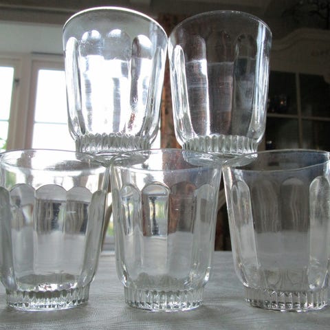 Glassene har en stett med en dekorativ, innvendig spiral av luftbobler.