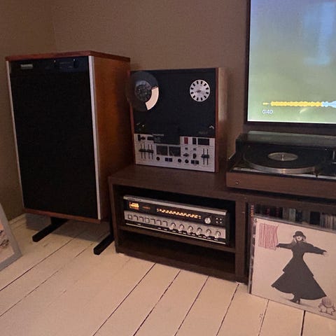 Tandberg TD 20 A 4 spors, speed: 3 3/4 og 7 1/2 selges , Avspilling fungerer utmerket. Opptak fungerer som den skal men kan knitre litt når man skrur på inngangsvolums knappene ved opptak, Blir bra når de brukes litt, fungerer i både opptak og avspilling, spoler og bremser utmerket selv om den til tross er noen år. blir for lite brukt så derfor legges den til salg. Ser relativt bra ut i kassen og mekanikk. Kan sende på kjøpers risiko. pakker selvfølgelig godt. følger med NAB er og en aluspole 10,5"