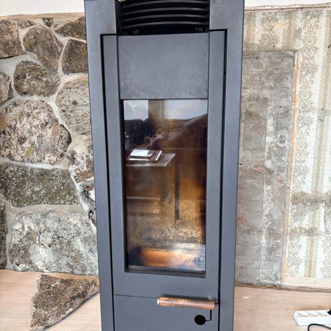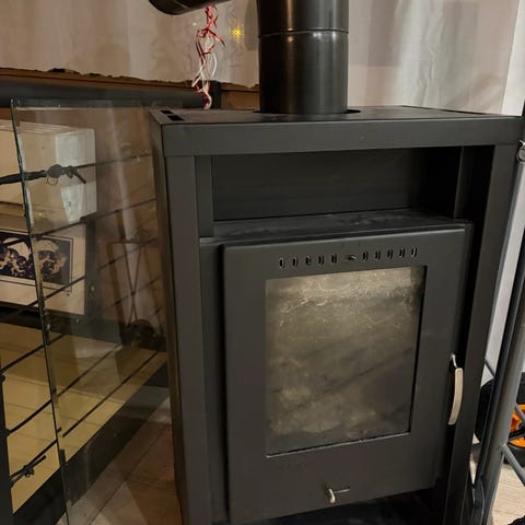Selger en vedovn med effekt på 5kw laget av svart stål. Kompakt størrelse med mål ca. 52,8cm bredde og 83,5cmcm høyde. God effekt i en liten størrelse. Se bilde for produktnavn og nr.