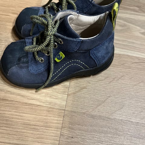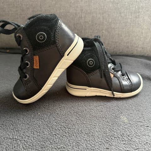 ECCO barnesko for gutt i størrelse 20. Skoene er mørkeblå skinn og har borrelåslukking for enkel tilpasning. Jeg kjøpte de brukt og rakk bare å bruke de et par ganger før de var for små. Se siste bildet for lignende annonser