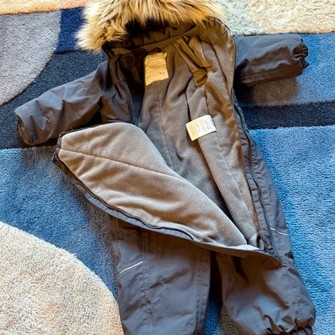 Veldig pent brukt dress fra Wheat i størrelse 86. Denne er veldig romslig i størrelsen. Kun brukt av mitt barn i ca tre måneder, så er ikke særlig mye tegn til bruk. God og tykk og varm vinterregndress.