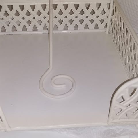Holder til servietter størrelse 12,5x12,5 cm. Kanter i tvinnet metall. Brunsvart. Ingen skader.