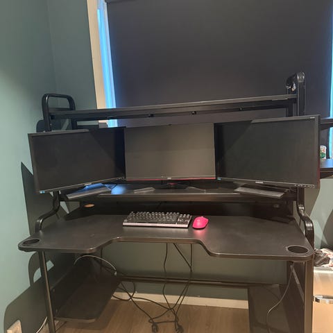 Fredde gamingpult fra ikea selges da den ikke blir brukt her lenger. Er noen skraper i den, men ellers hel og fin. Er montert ledlys som selvfølgelig følger med. Sidehyllene er ikke montert, men medfølger.