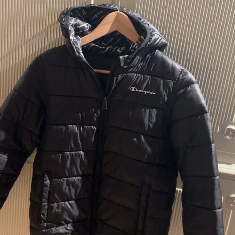 Champion unisex barn jakke i størrelse 152. Jakken er svart. Den har hette og glidelås, og egner seg for barn i denne størrelsen.