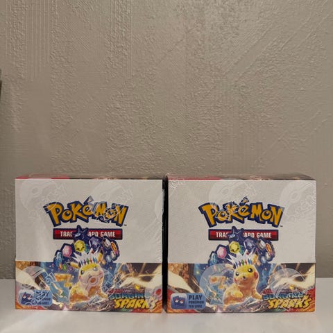 Pokémon Burning Sparks booster box med forskjellige kort for samling og spilling.