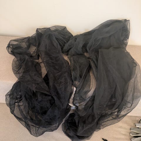 Regntrekk, myggnett og saueskinn til vogn