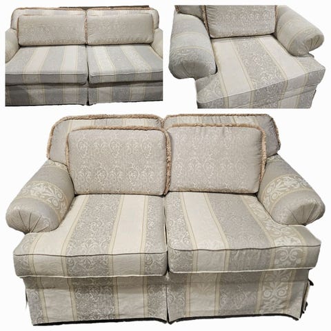 Sofa der sofaputer og rygg er i veldig god stand. Noen bruksmerker på bena. Avbildede pynteputer medfølger ikke.