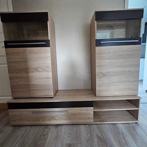 Vitrineskap og tv-benk selges, helst samlet. Må hentes i Oslo :)
