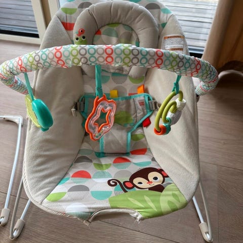 Vippestol av merket YNGRI fra barnashus. Denne stolen er renset og ikke brukt mer enn tre ganger av vår sønn, jeg kjøpte den ny av noen som hadde fått i gave.