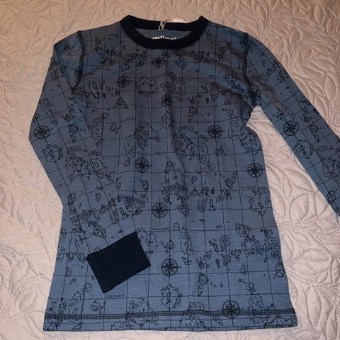 Ny Reflex merinoull trøye, str 134-140 . Mørk blå med mønster