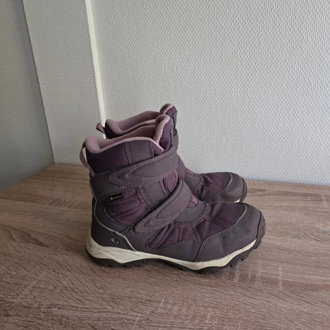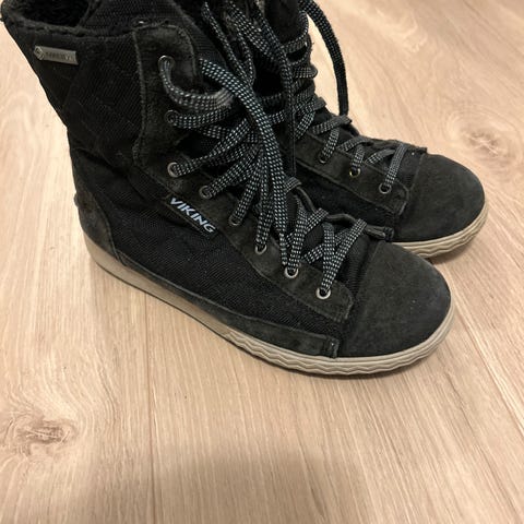 Vintersko størrelse 36 for unisex. Skoene er svarte og har en robust såle med godt grep. De har snøring og glidelås på siden for enkel på- og avkledning. Materialet er slitesterkt og egnet for utendørs bruk.