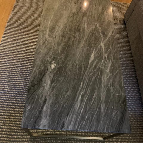 Pent brukt Bolia sofabord. Bordet er i god stand, men har enkelte bruksmerker/flekker på marmoren. Kan hende disse kan utbedres med riktig rengjøringsmiddel (marmorpuss).
