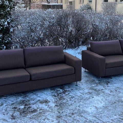 Pent brukt sofa. Gir litt etter på venstre side, fjærene kan gi noe lyd fra seg hvis man setter seg brått ned, men bør kunne fikses enkelt.