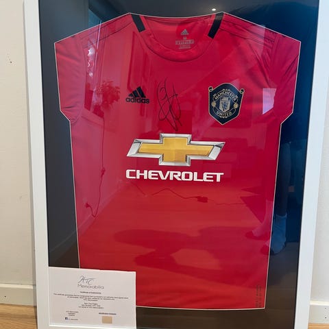 Signert Cantona drakt selges for 3500kr pluss frakt. Drakten kan levers i Oslo/Østfold om ønskelig.