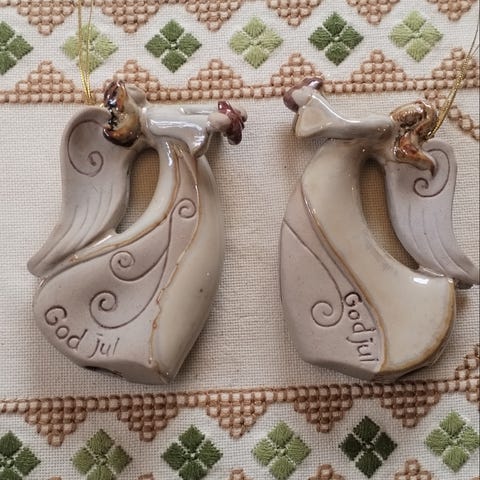 To unike og vakre keramikk engler