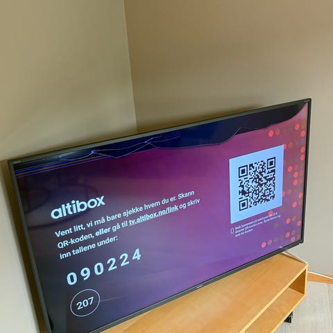Brukt, med en synlig liten skade midt på. Vises ikke noe særlig når tv er på.